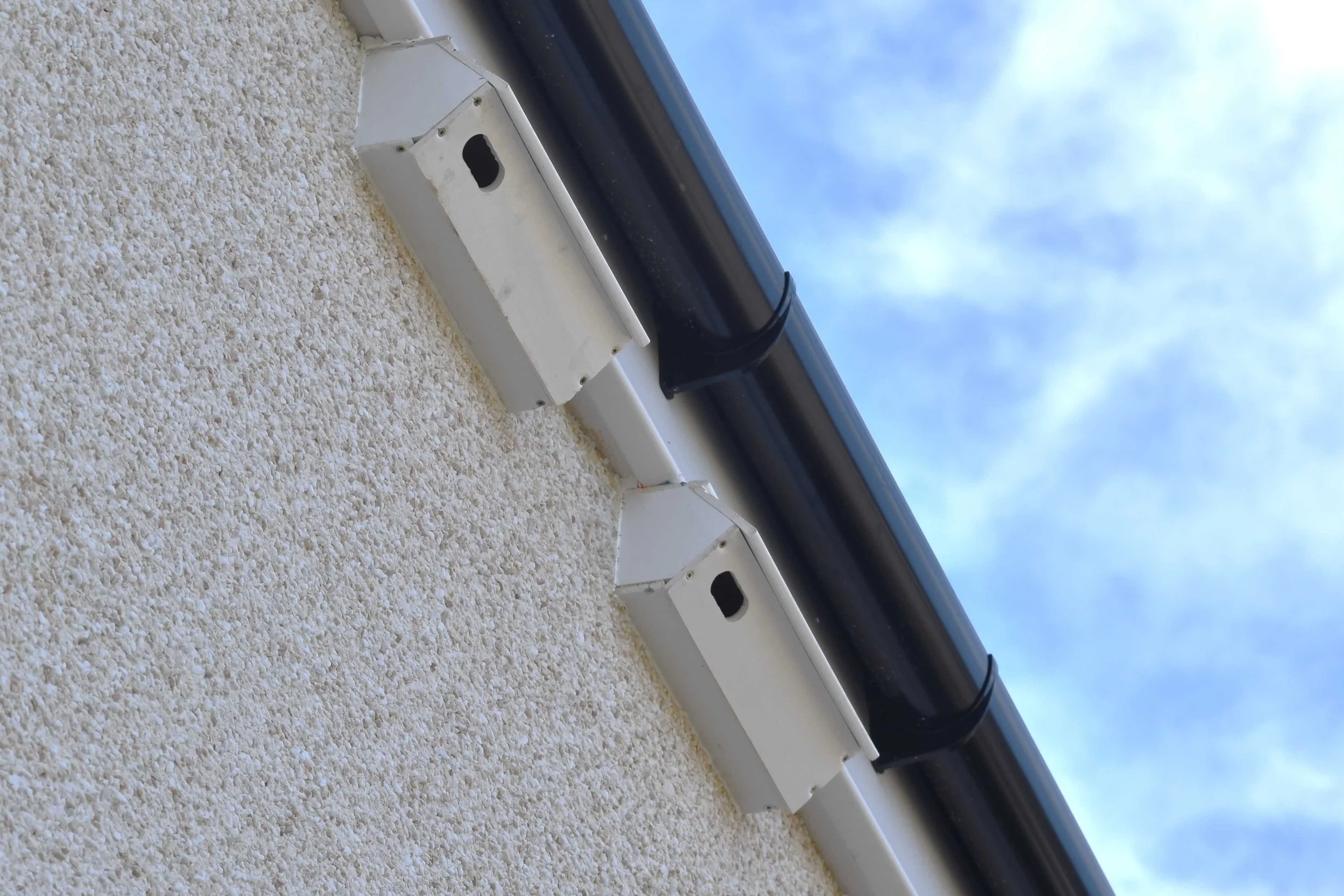 This is a fully uPVC nest box, which can be fitted either snugly up under eaves or soffits, or embedded within external wall insulation (EWI).