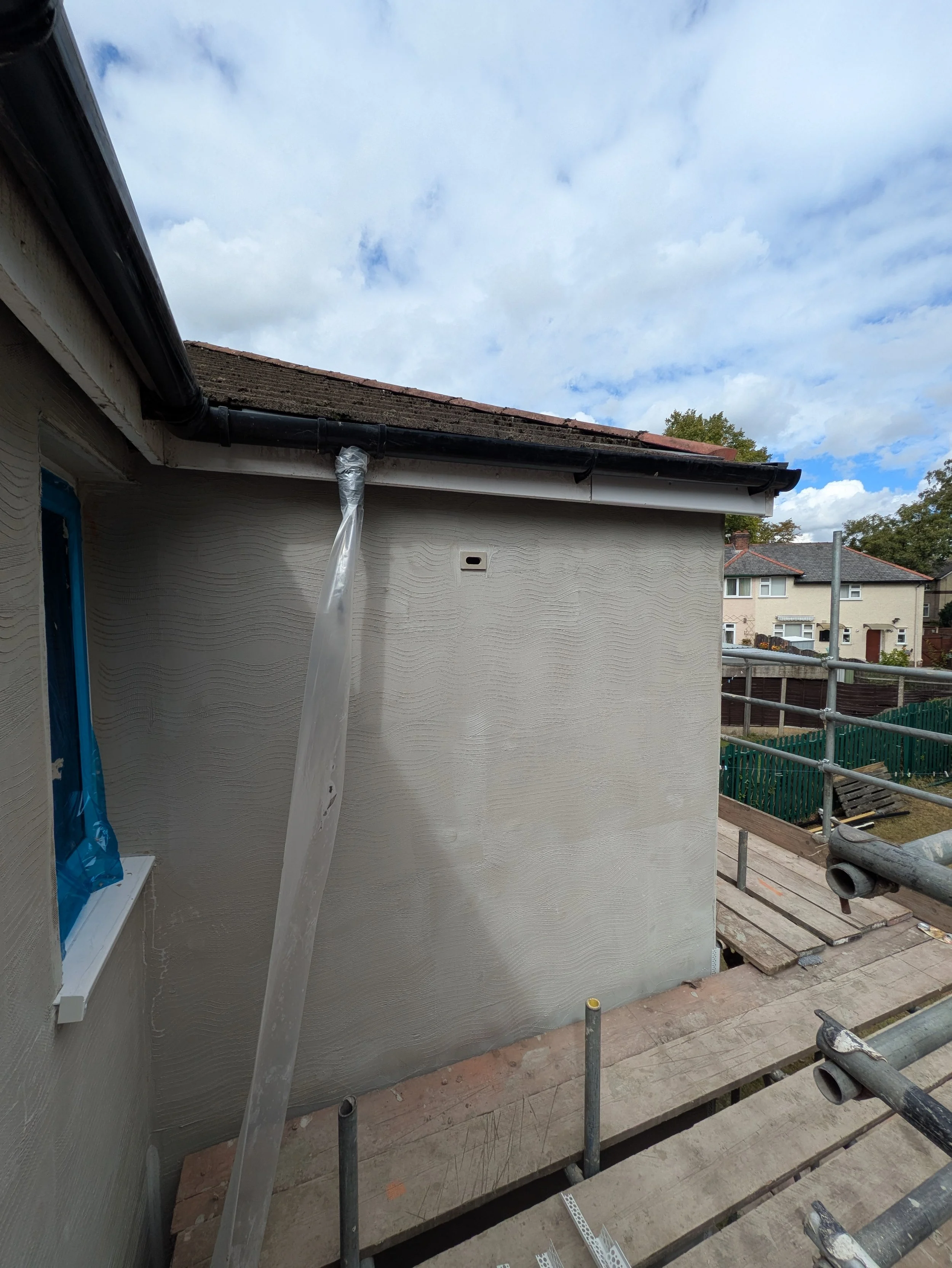 By minimising heat loss in cold weather and heat gain in warm weather, EWI creates a more comfortable living environment and reduces heating costs. The insulant is typically expanded polystyrene or mineral fibre of varying thickness, typically finished with a render, brick / stone effect finish or a cladding.